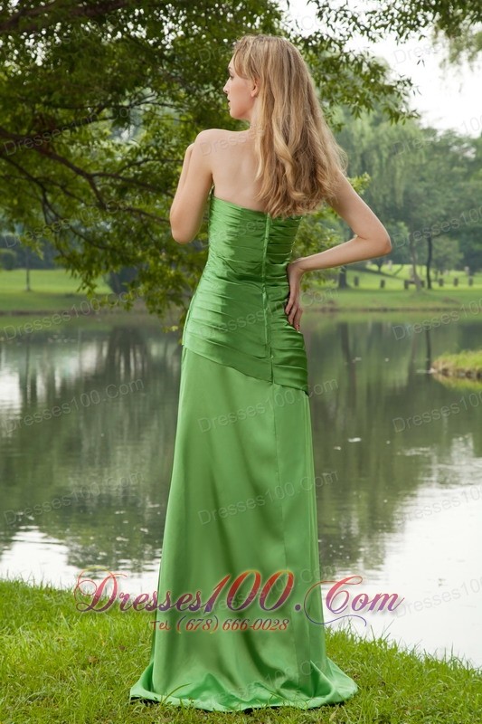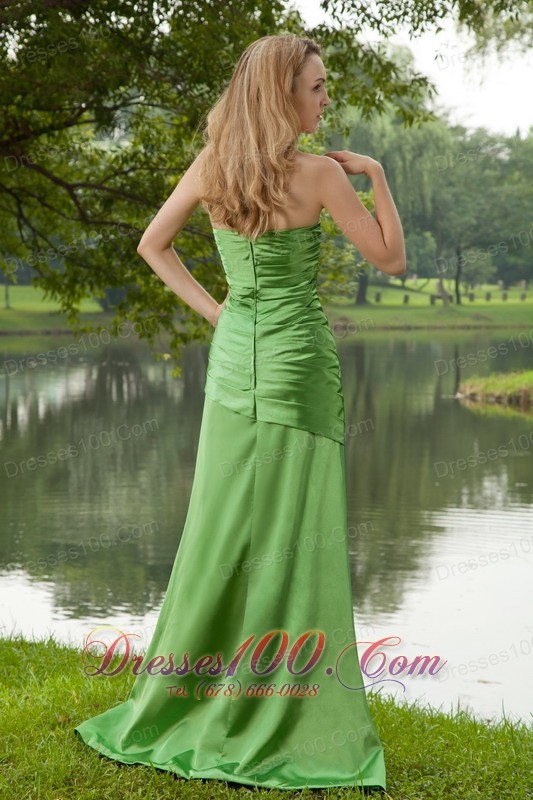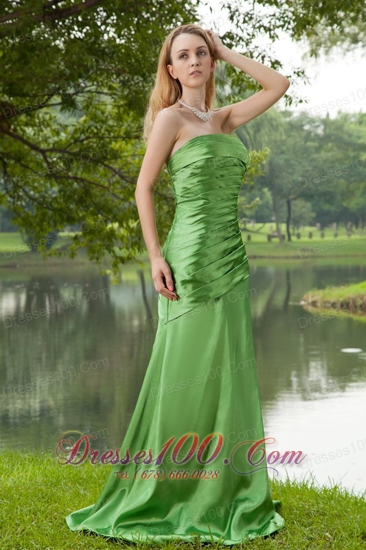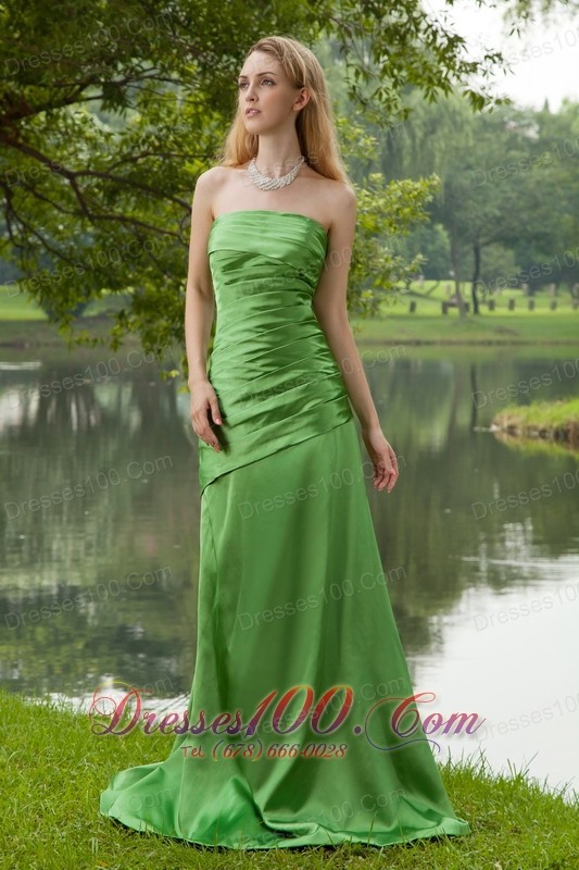 Brush Train Strapless Spring Green Bridesmaid Dress Ruch