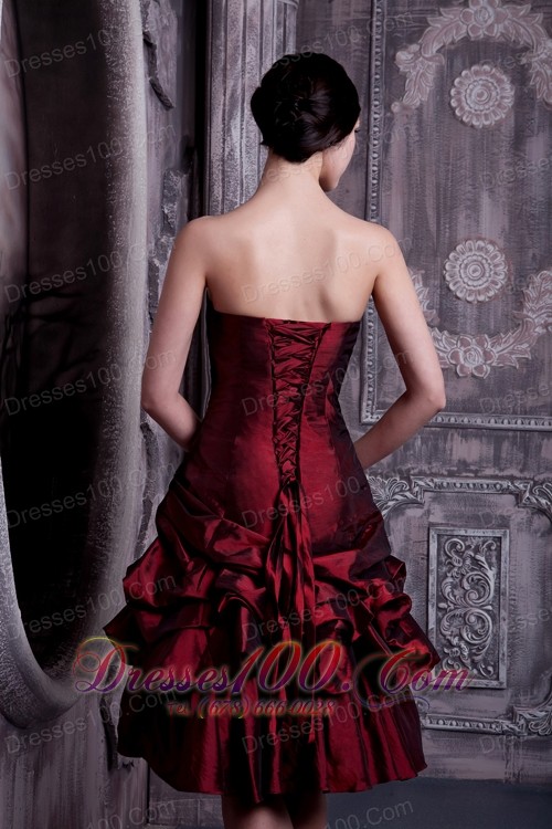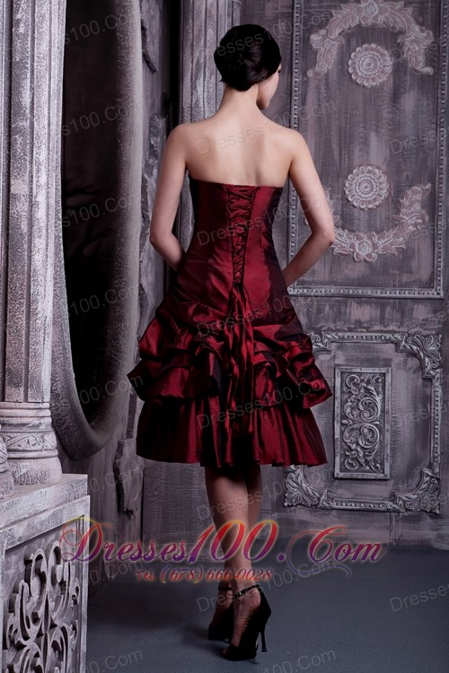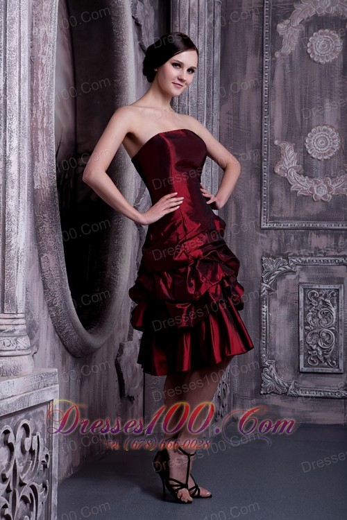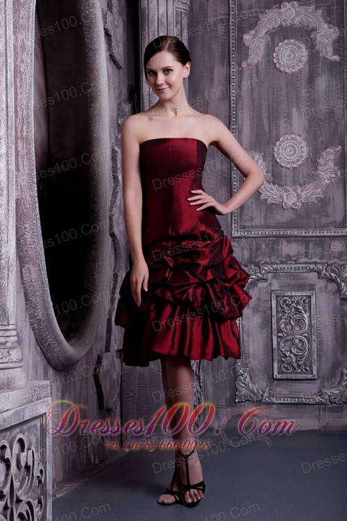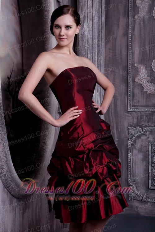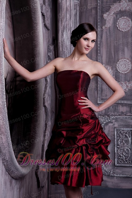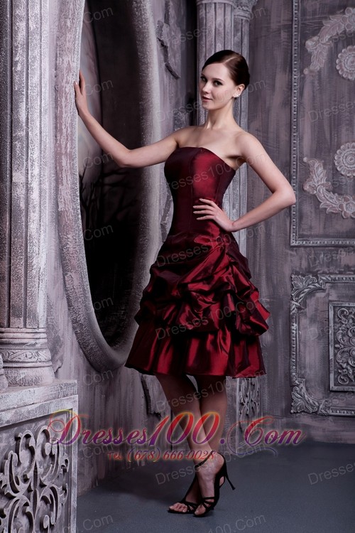 Pick-ups Burgundy A-line Strapless Dress for Bridesmaid