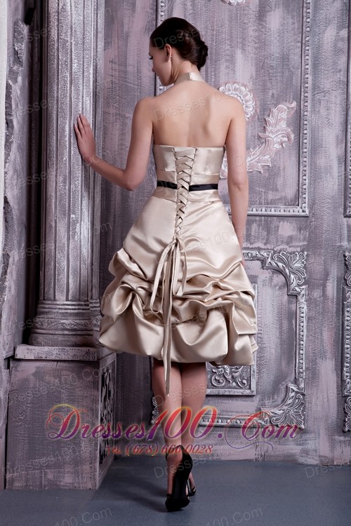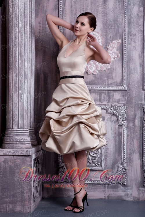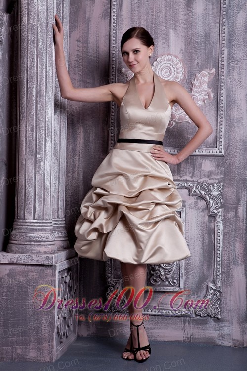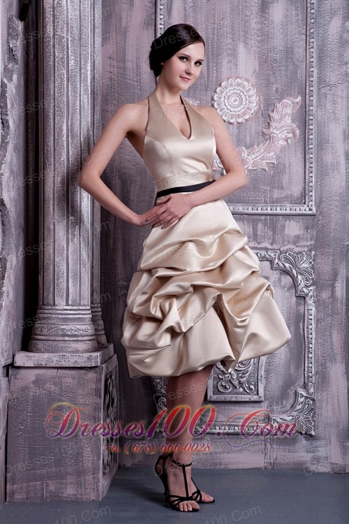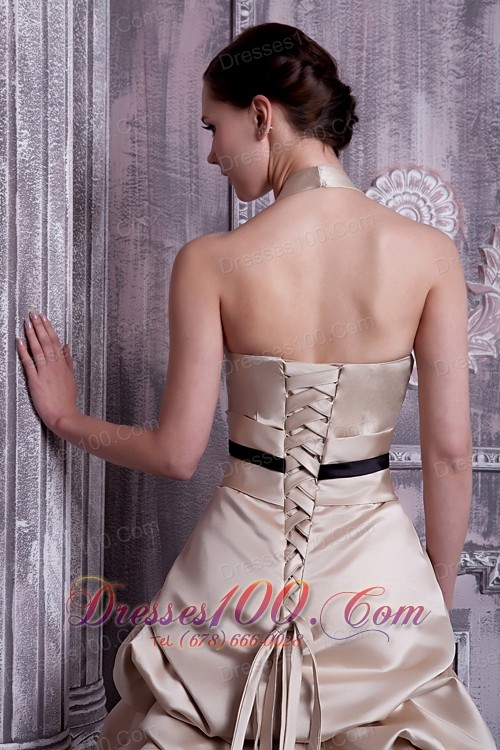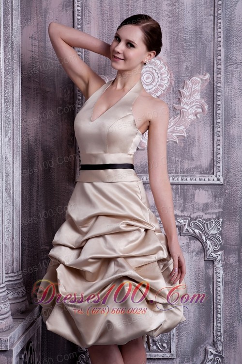 A-line Halter Pick-ups Champagne Maid of Honor Dress