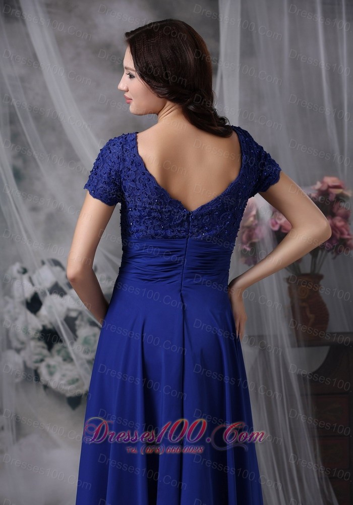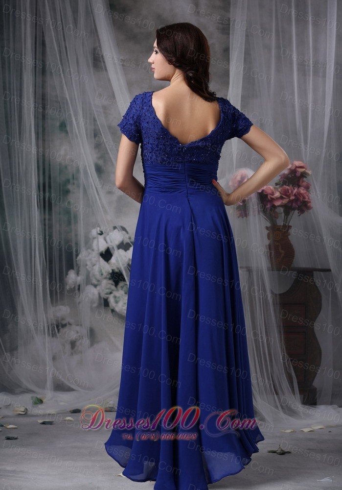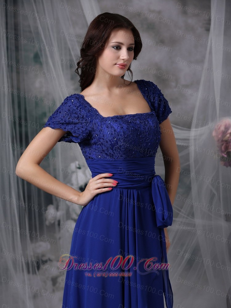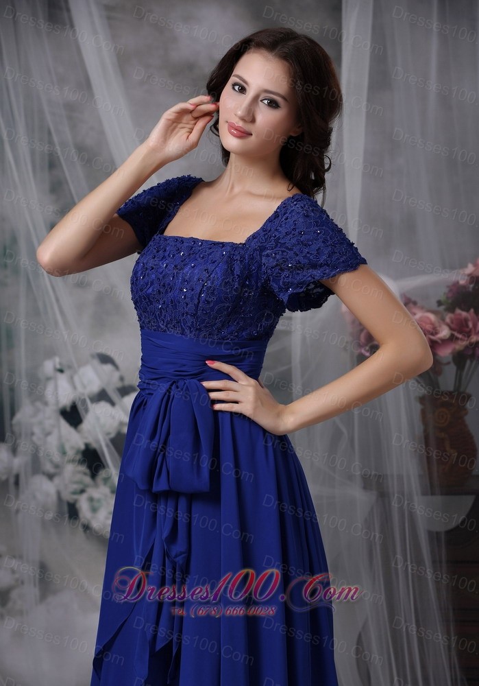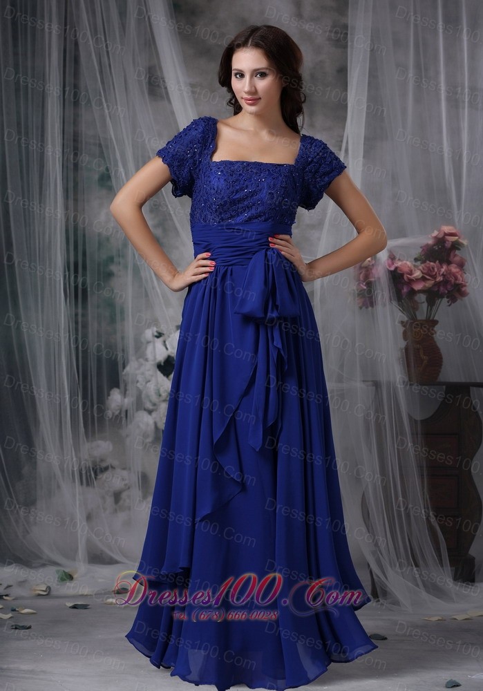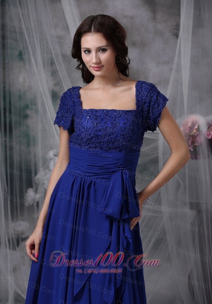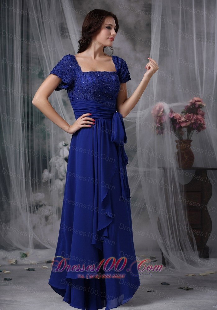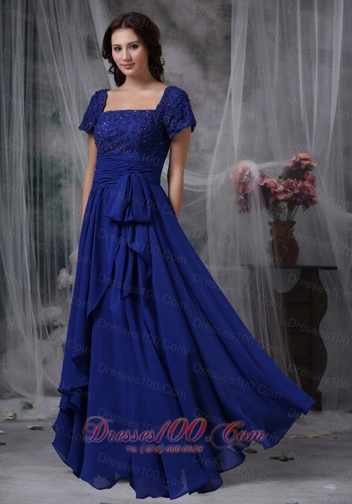 Beaded Chiffon Square Royal Blue Bridal Mother Dress