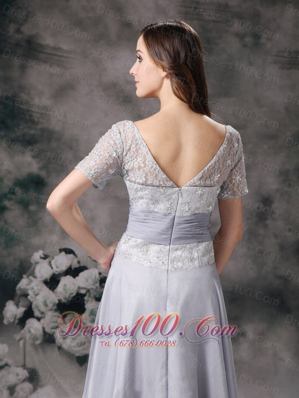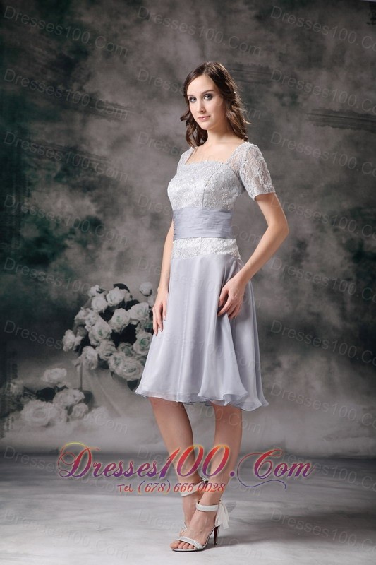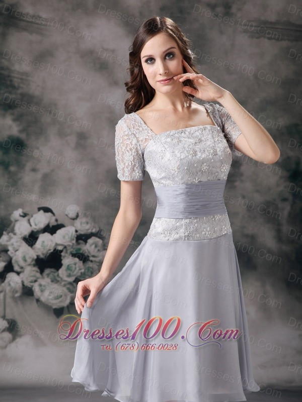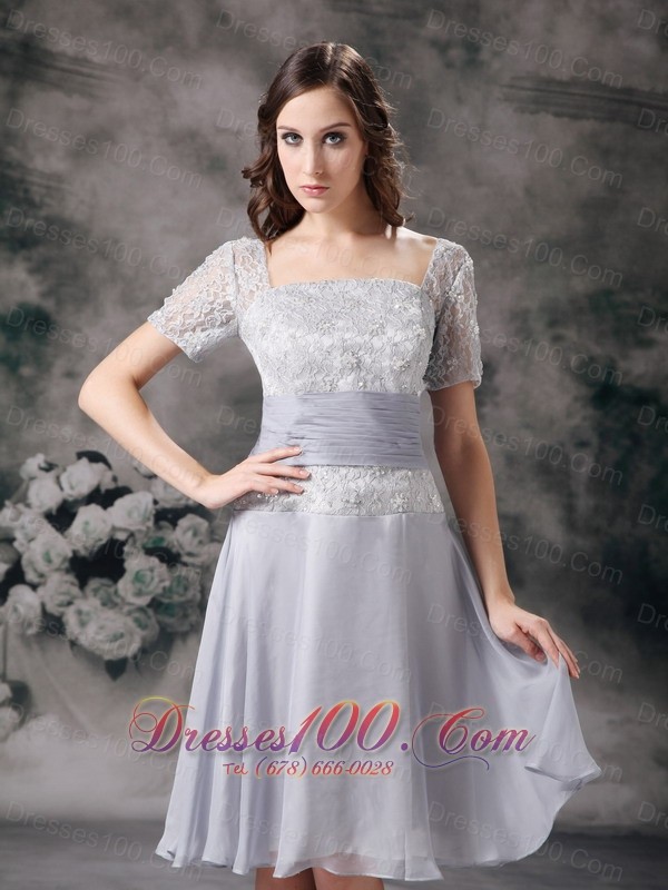 Timeless tailoring meets modern style in this beautiful knee length dress. This short lilac dress features short sleeves, a ruched belt empires waistline, and sleek pencil skirt. Flaterring beading dotted the lace fabric make the notable dress creates a touching effect which makes you the hotline. With zipper-up back for great fit.