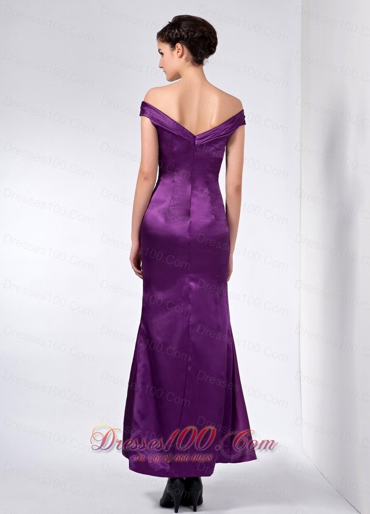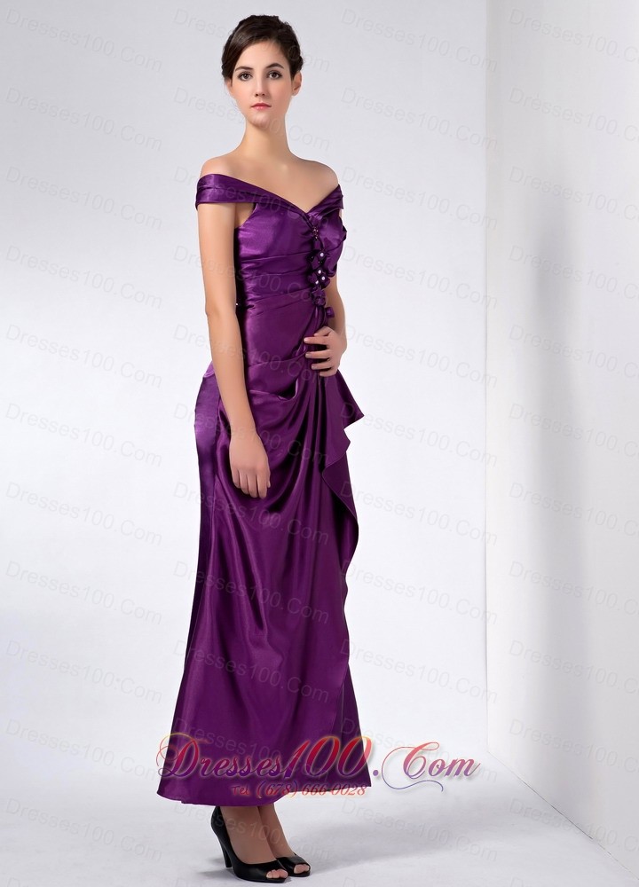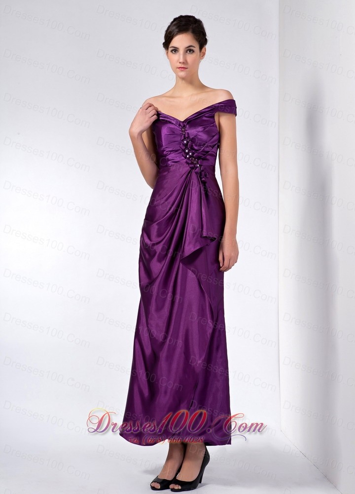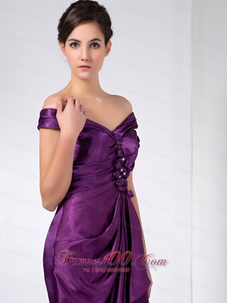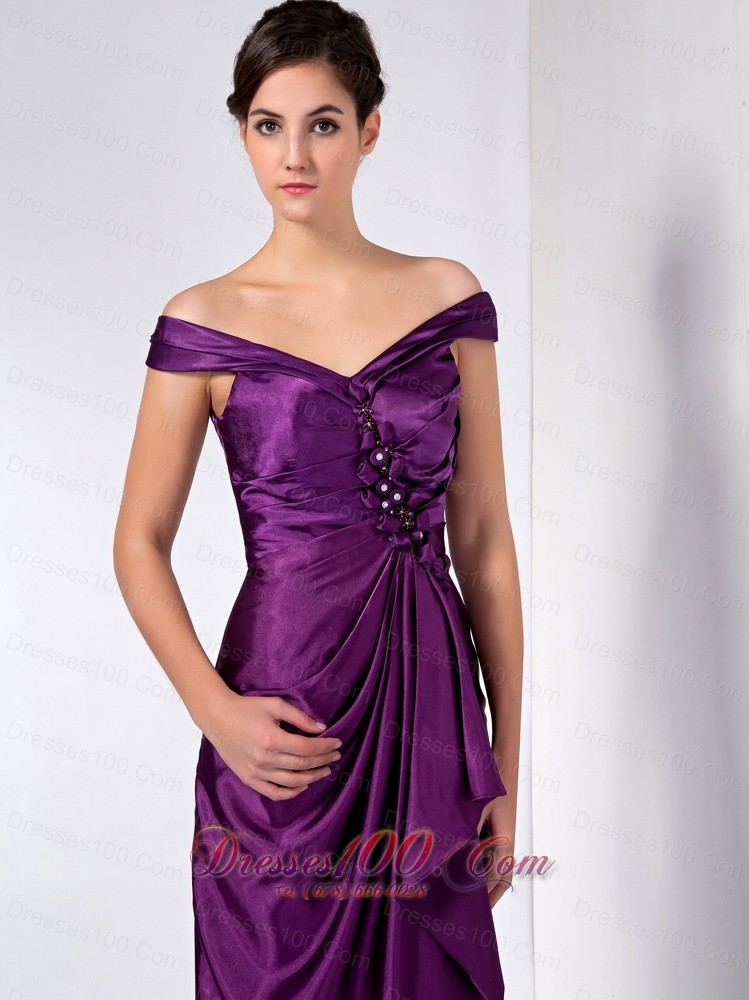 Off The Shoulder Purple Wedding Mother Dress Beaded
