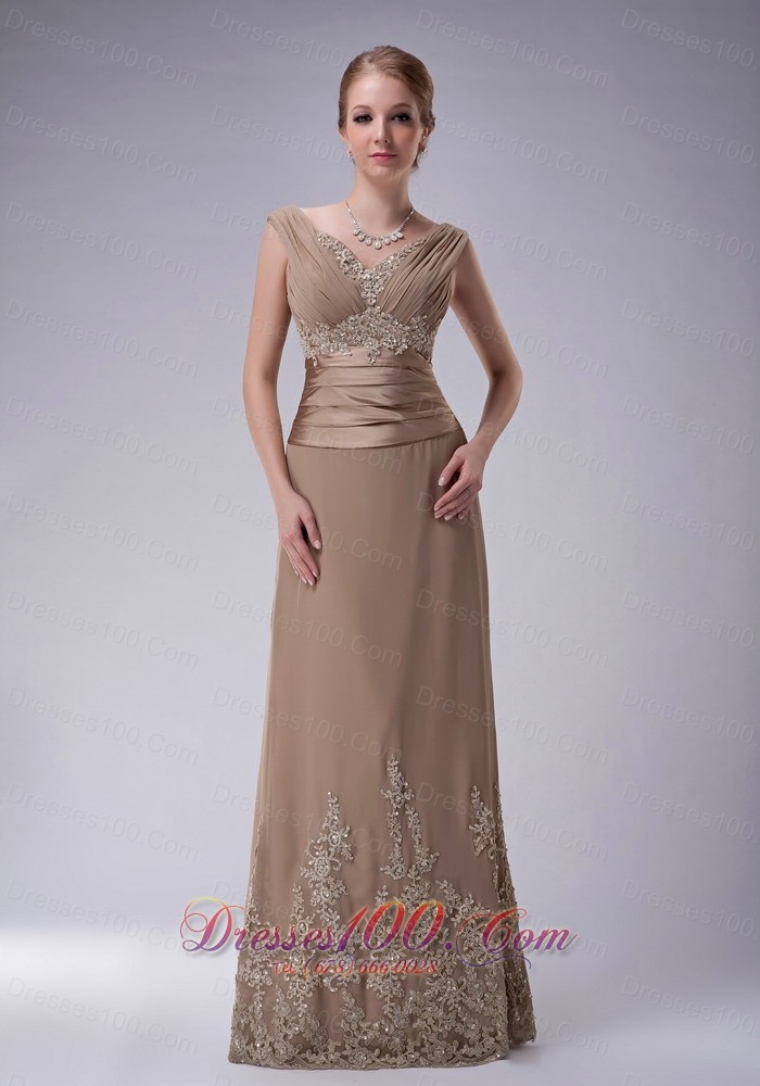 V-neck Champagne Chiffon Mother Dress with Appliques