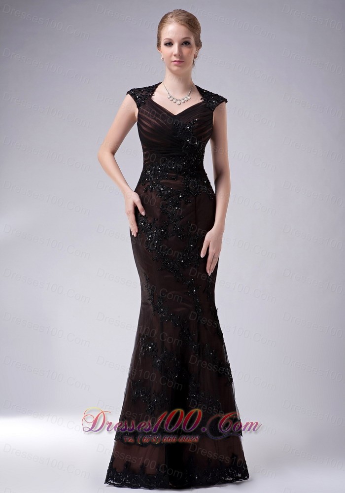 Taffeta V-neck Appliques Brown Mother Of The Bride Dress