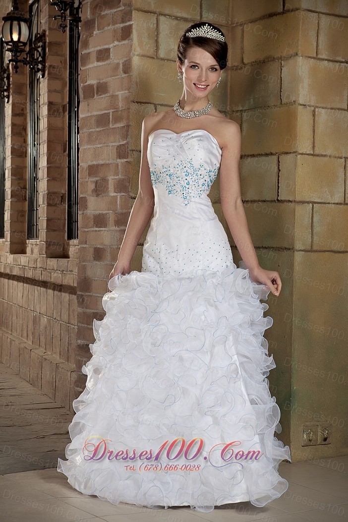 Sweetheart Organza Ruffles Beading Bridal Wedding Gown
