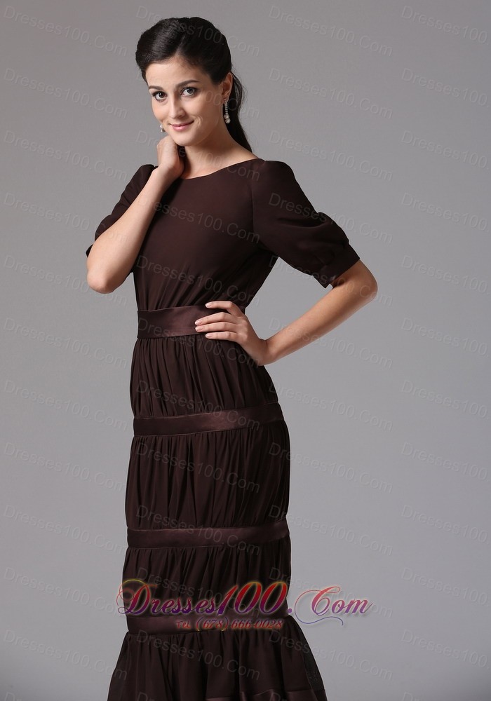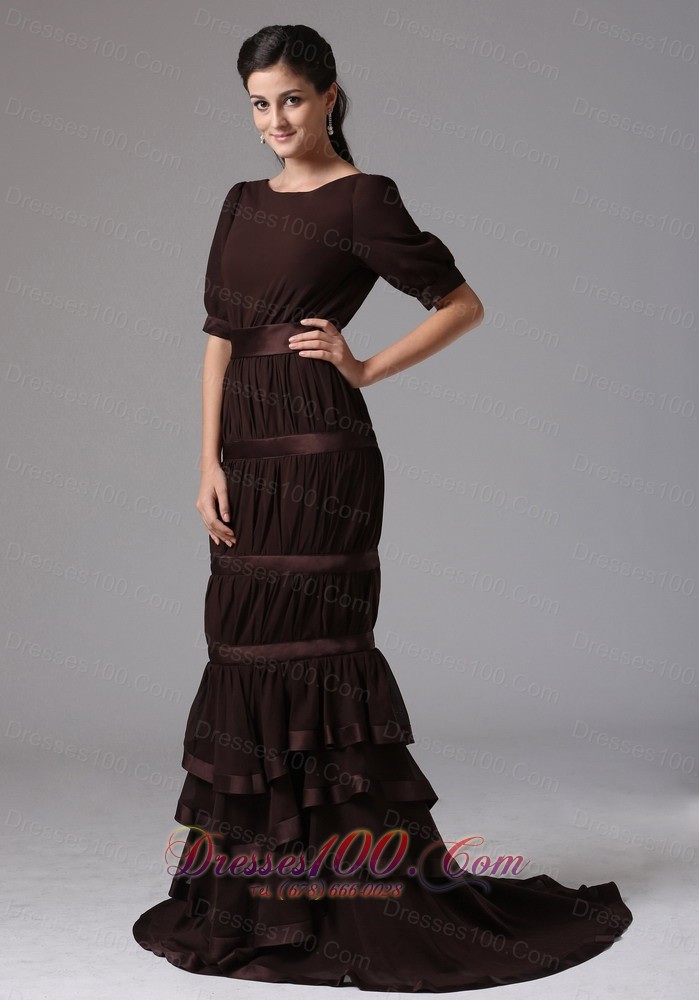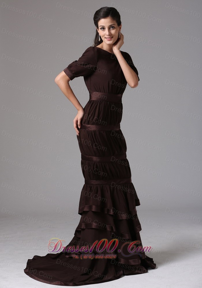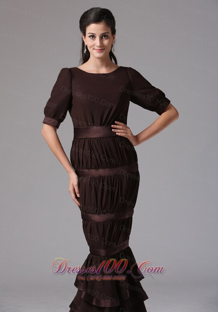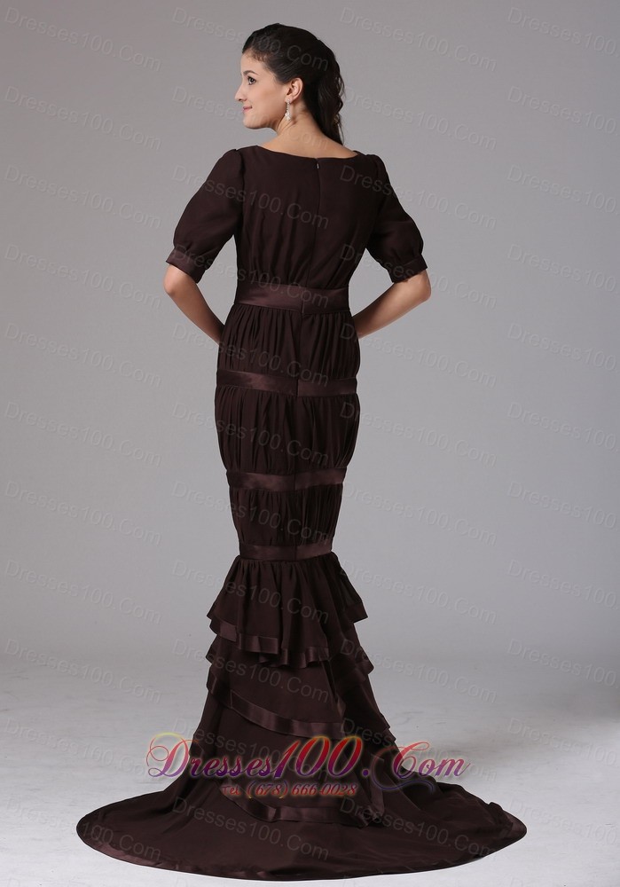 Brown Mermaid Scoop Ruffled Layeres Mother Of The Dress