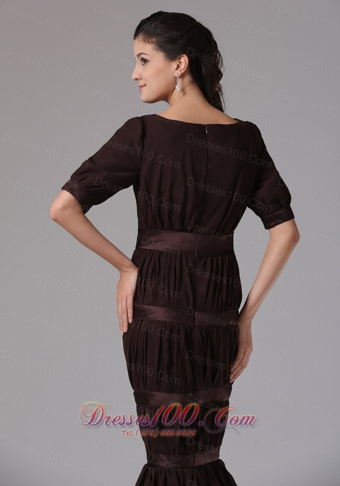 Brown dress,scoop neckine with zipper up back design makes the dress more fine and elegant.The half sleeves can keep warm and embellish your arms.The short Mother of the Bride Dreses can show your slim perfectly. The special mermaid skirt accents your grace.