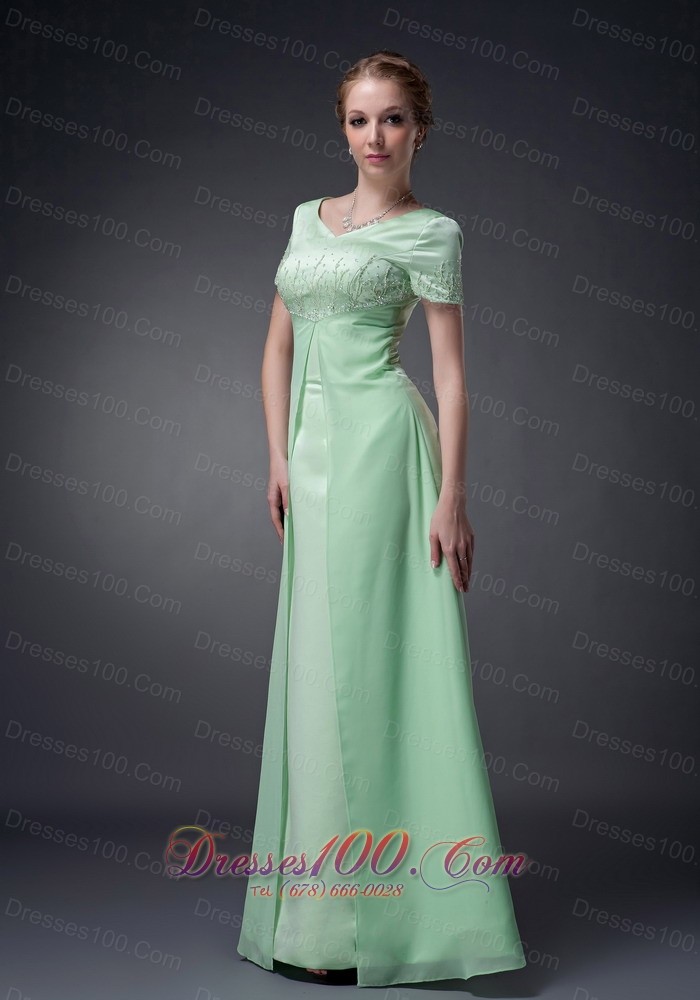 Apple Green A-line V-neck Motb Dress Chiffon Beading