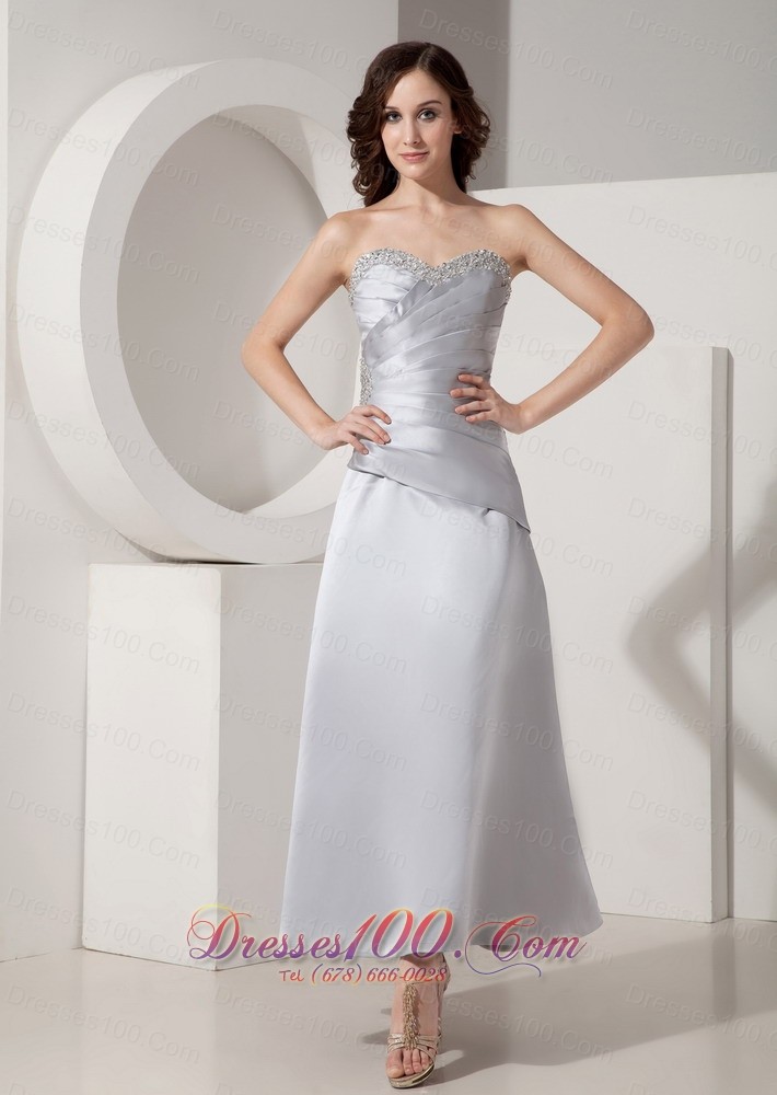 If you're longing for the romantic and heavily detailed gowns of yesteryear, this one may be just what you're looking for.It has a strapless bodice with a beaded sweetheart neckline and ruching gathered at one side. The a-line skirt is so romantic, with lace-up tie back for great fit.