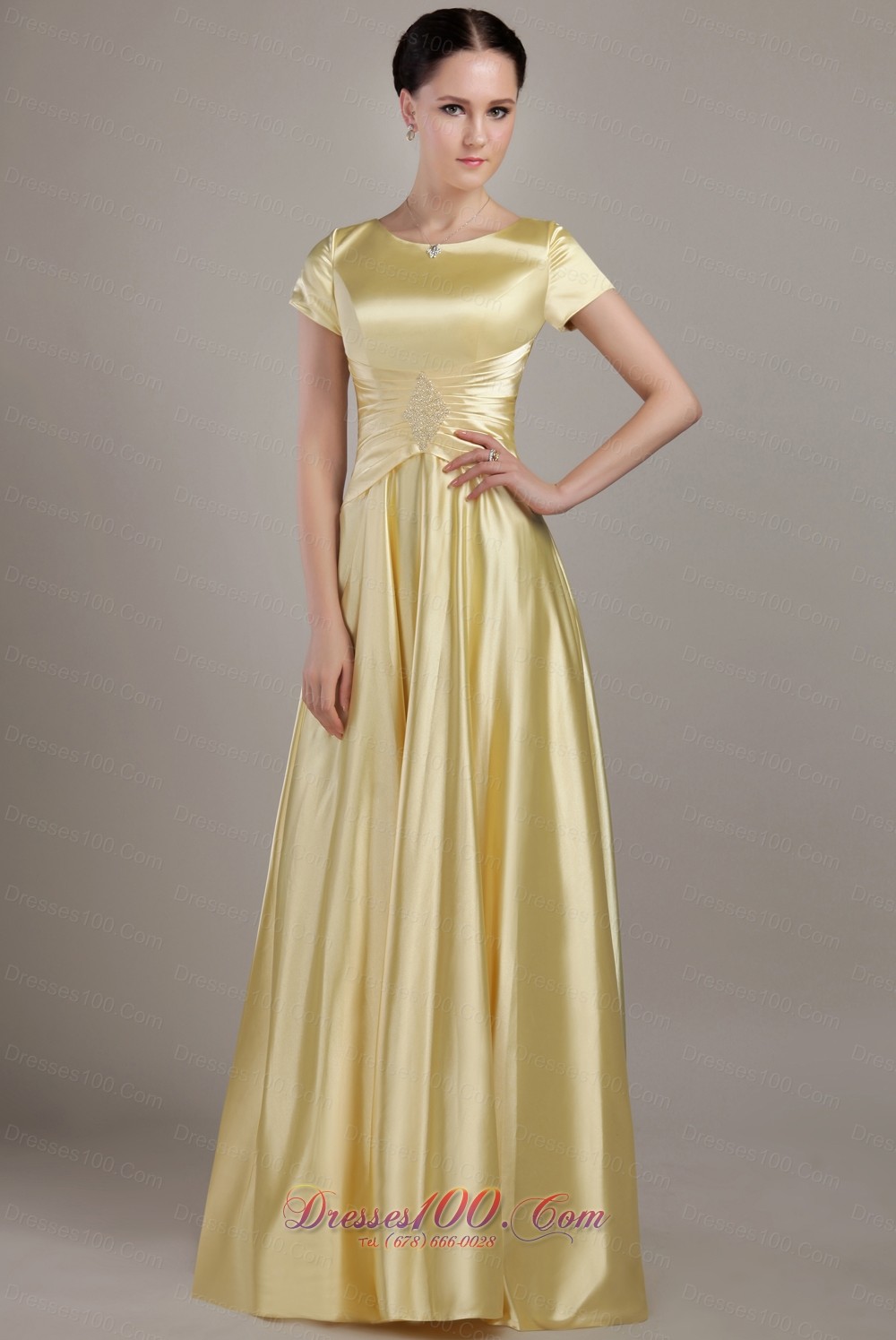 Empire Scoop Neck Ruched Long Mother Bride Dress