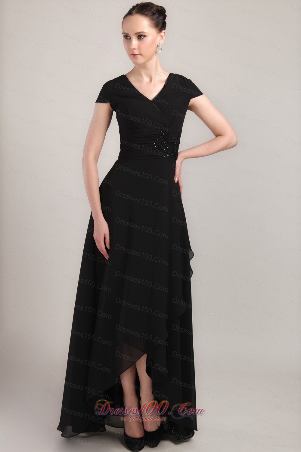 V-neck Short Sleeves Uneven Hemline Mother Bride Dress