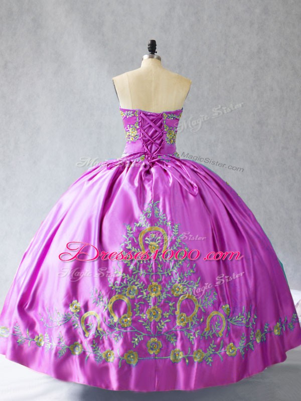 Extravagant Sleeveless Satin Lace Up Quinceanera Gowns in Lilac with Embroidery