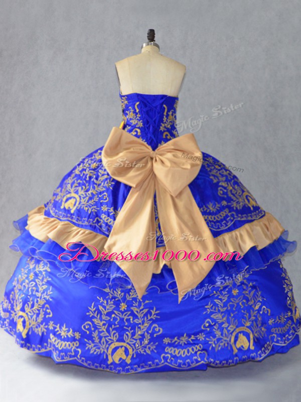 Royal Blue Sweetheart Lace Up Embroidery and Bowknot Ball Gown Prom Dress Sleeveless