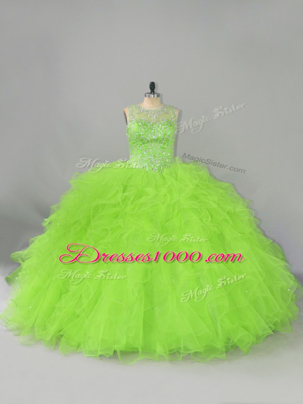 Tulle Scoop Sleeveless Lace Up Beading and Ruffles Vestidos de Quinceanera in