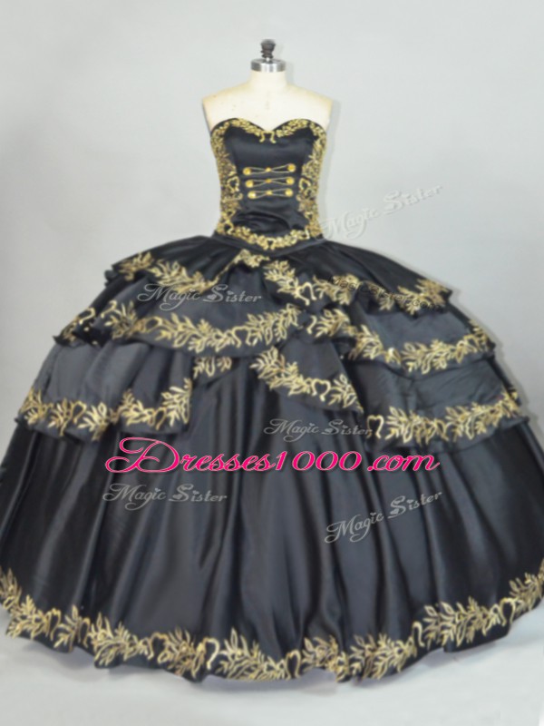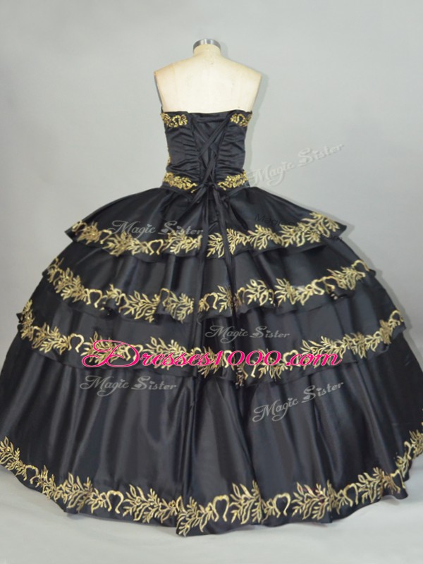 Vintage Black Sleeveless Embroidery Floor Length Quinceanera Gowns
