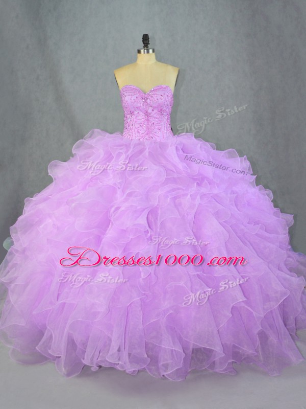 Lavender Sleeveless Beading and Ruffles Floor Length Quince Ball Gowns