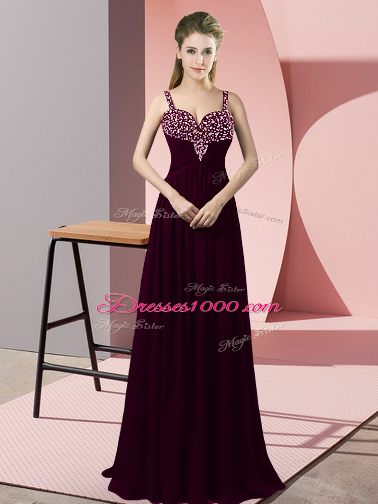 Perfect Straps Sleeveless Chiffon Juniors Evening Dress Beading Zipper