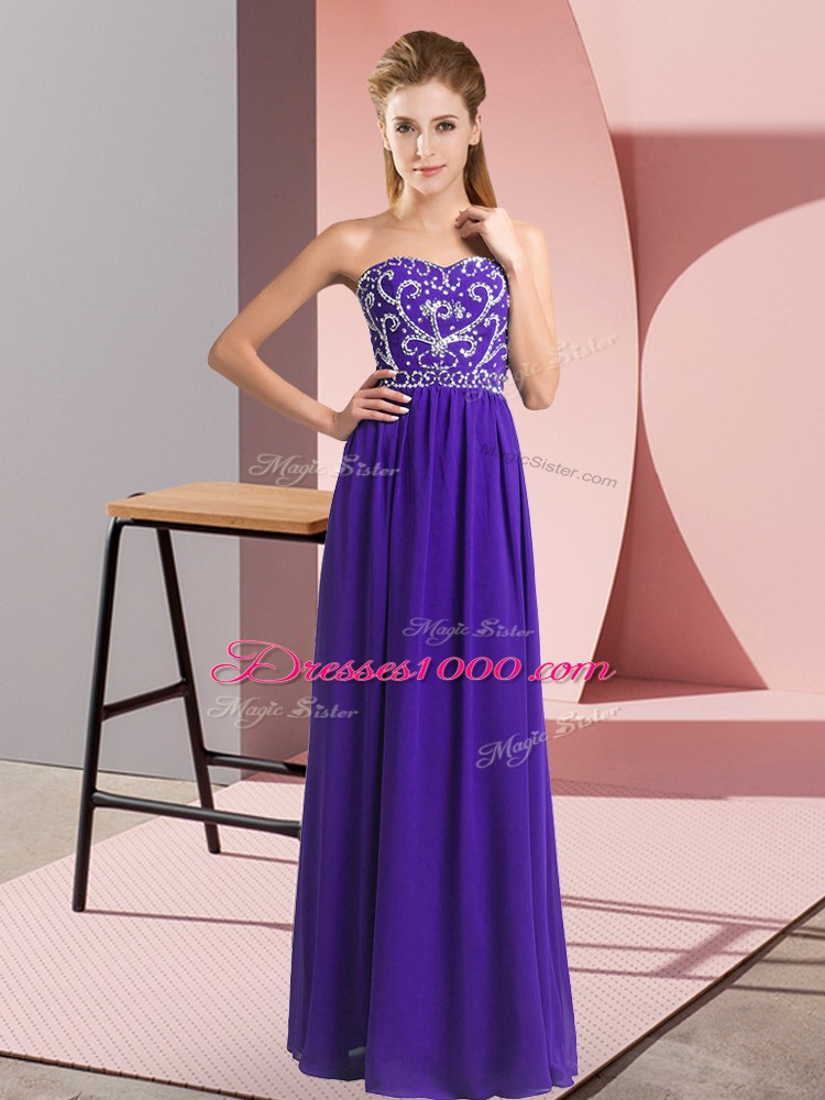 Purple Empire Chiffon Sweetheart Sleeveless Beading Floor Length Lace Up Formal Dresses