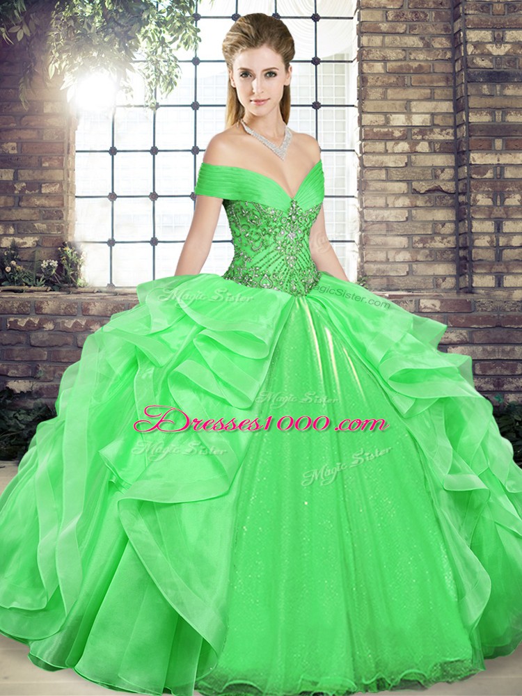 Dazzling Off The Shoulder Sleeveless Organza Sweet 16 Quinceanera Dress Beading and Ruffles Lace Up