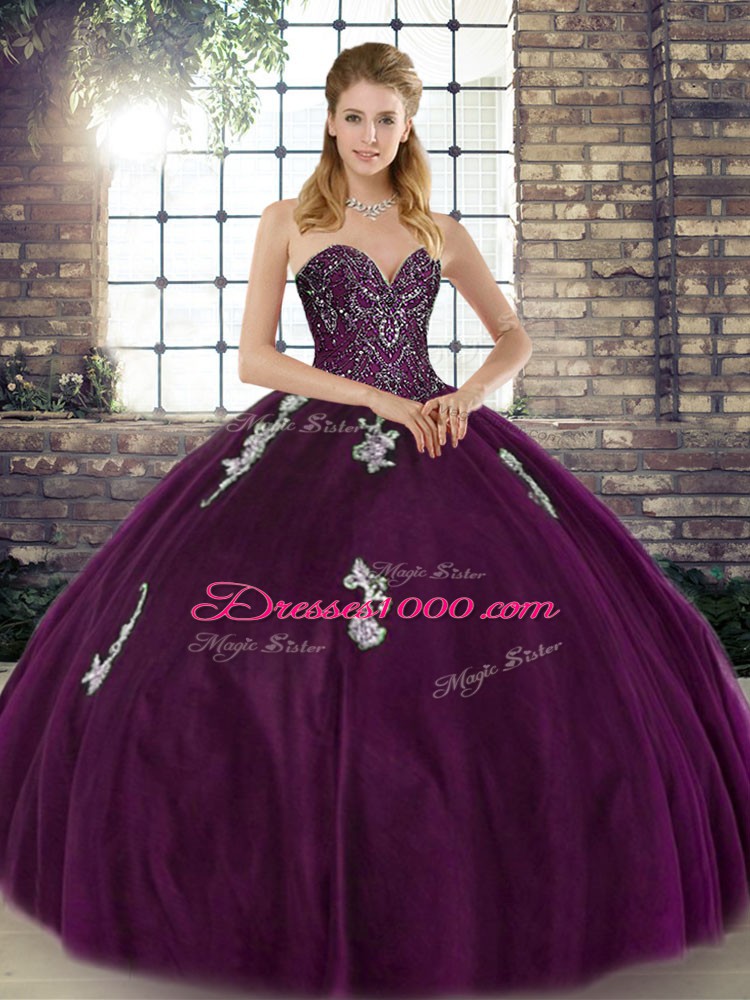 Beauteous Dark Purple Sleeveless Tulle Lace Up 15 Quinceanera Dress for Military Ball and Sweet 16 and Quinceanera