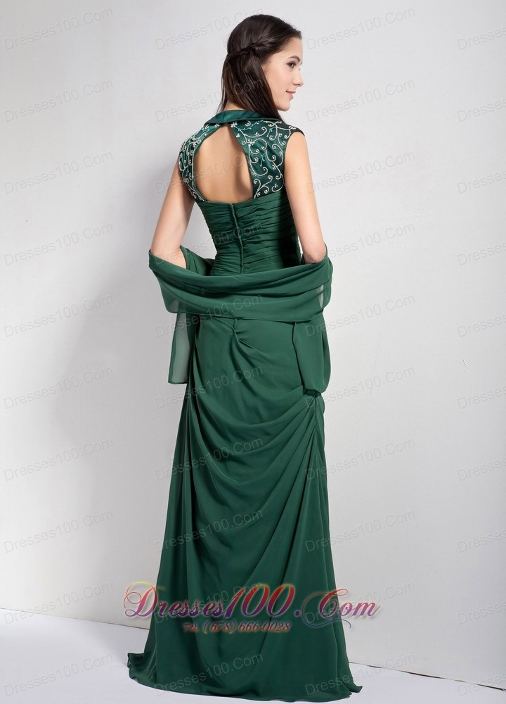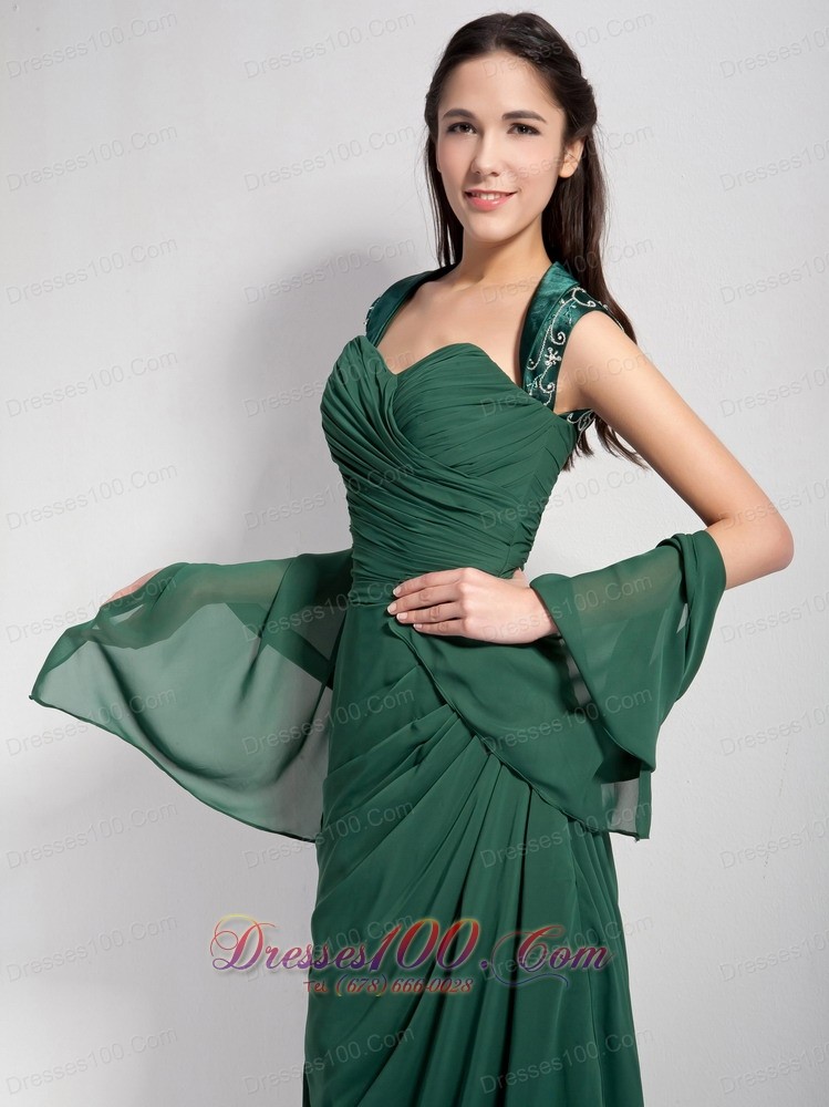 Dark Green Brush Train Mother Of The Bride Dress