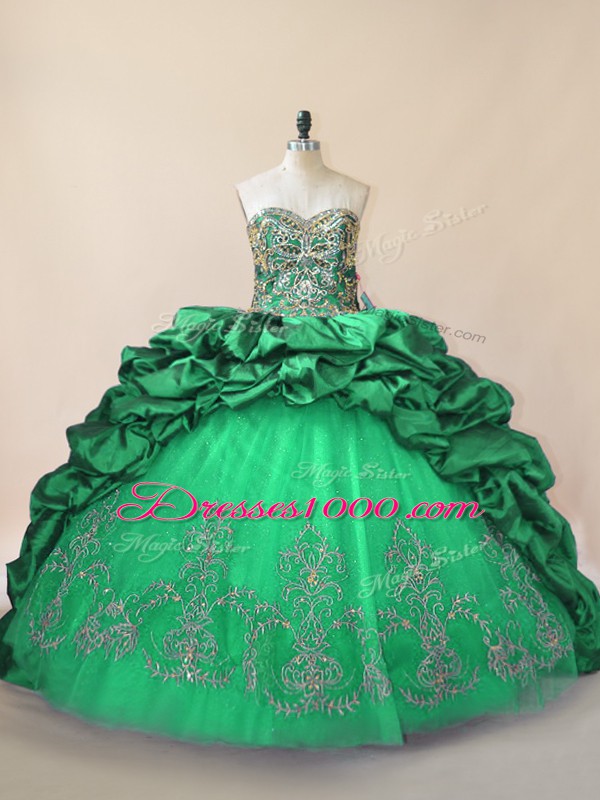 Stunning Green Quinceanera Dress Sweet 16 and Quinceanera with Beading and Pick Ups Sweetheart Sleeveless Brush Train Lace Up
