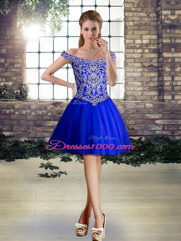 Fashion Royal Blue Sleeveless Tulle Lace Up Custom Made for Prom and Party