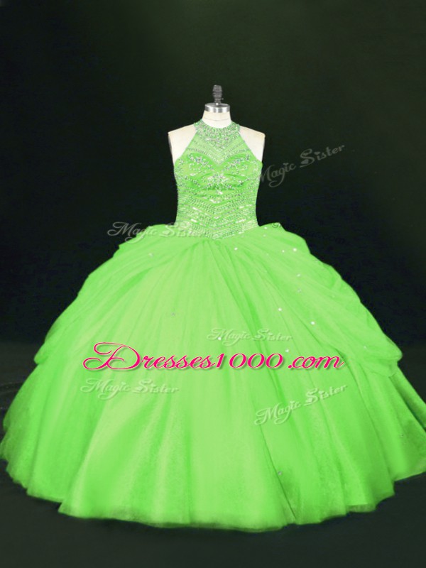 Noble Floor Length Ball Gown Prom Dress Tulle Sleeveless Beading