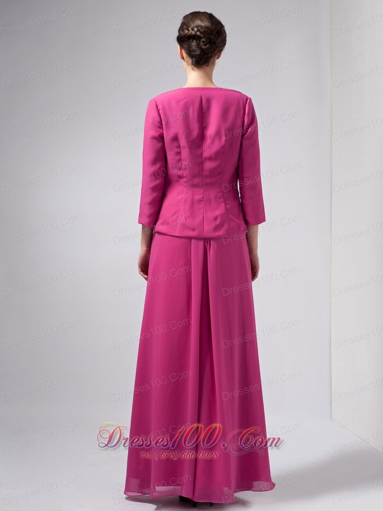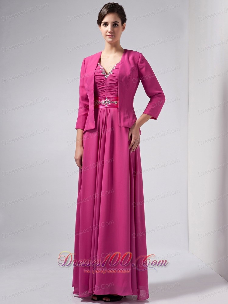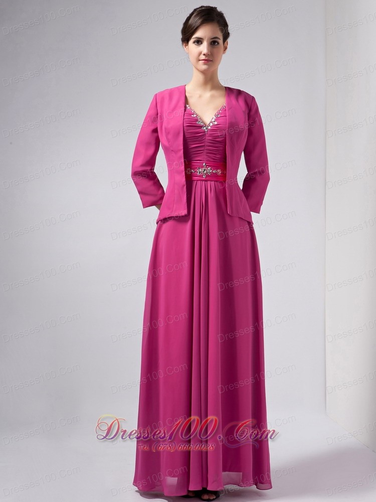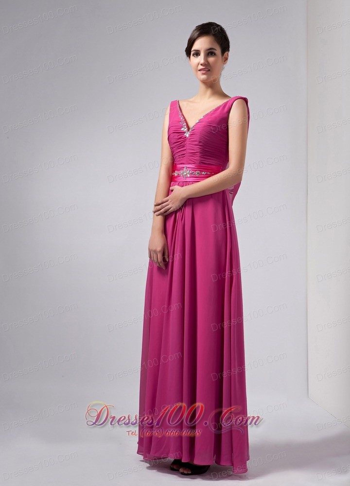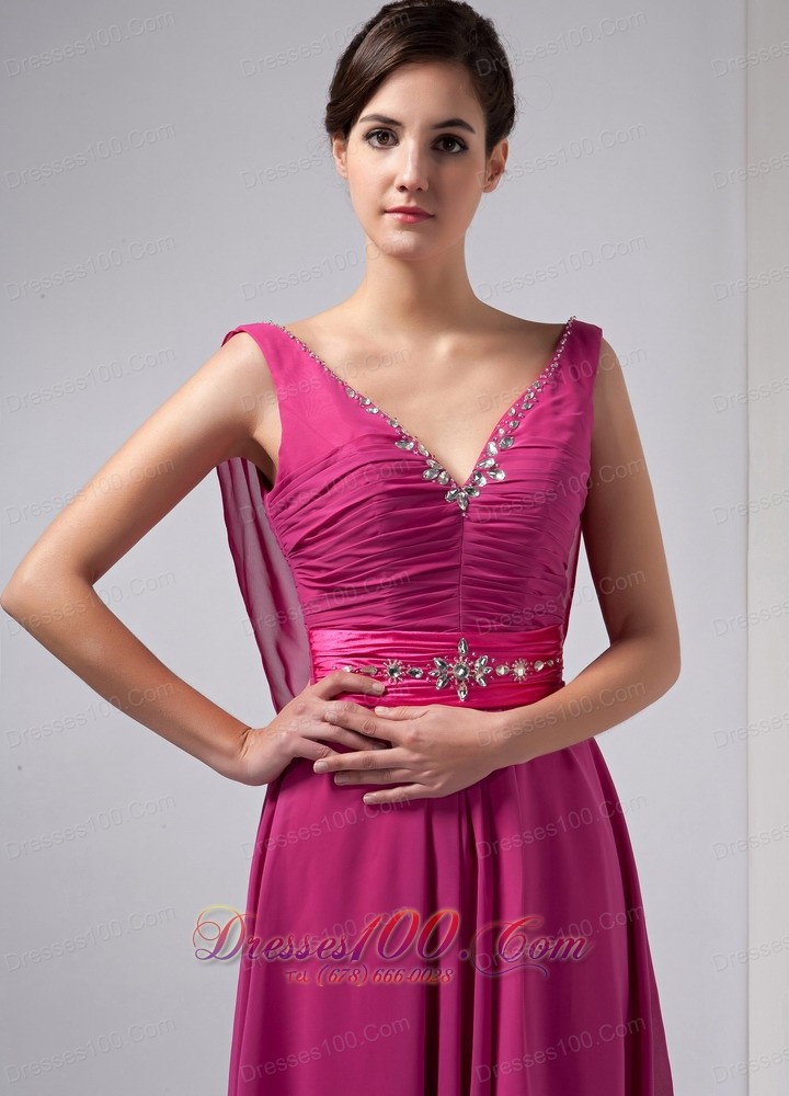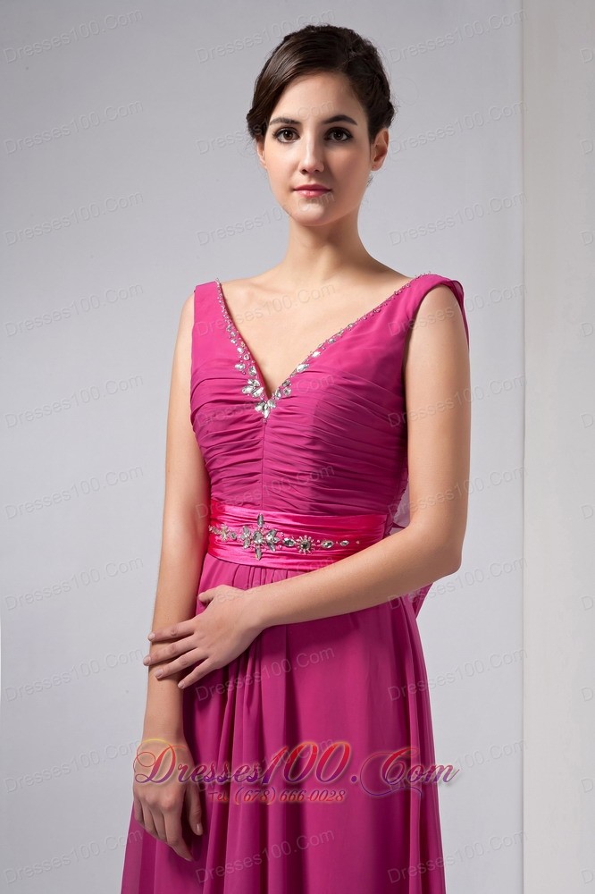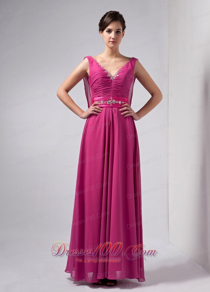 Hot Pink Column Mothers Dresses V-neck Floor-length