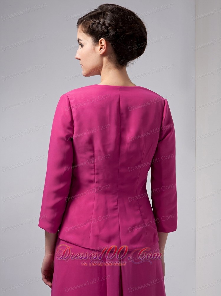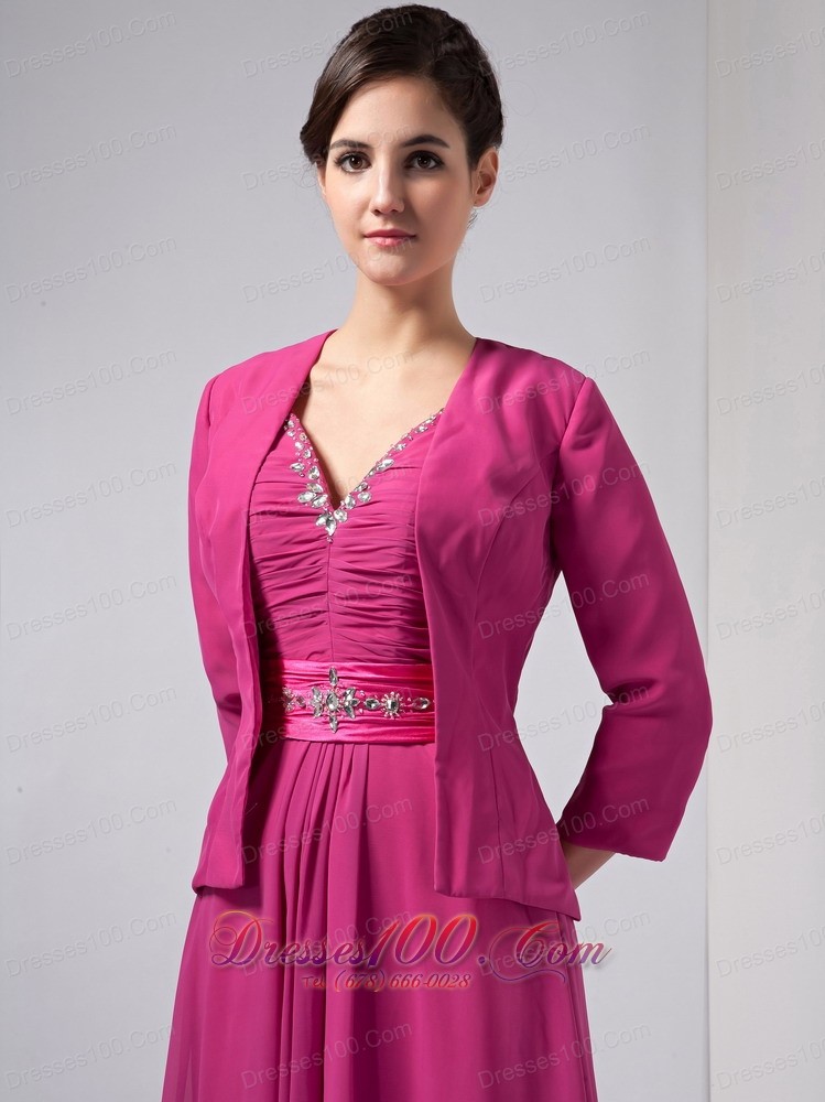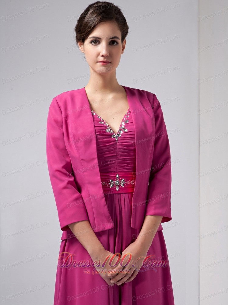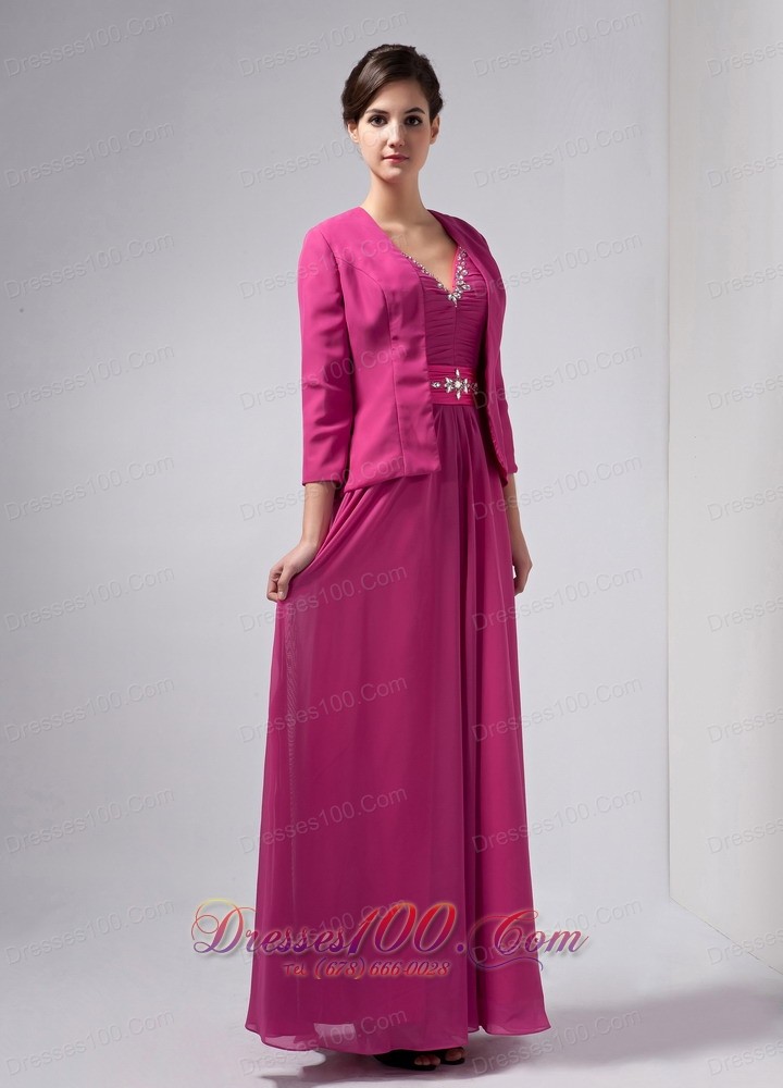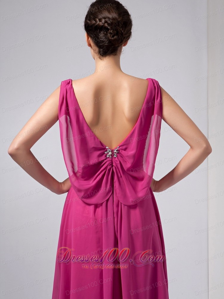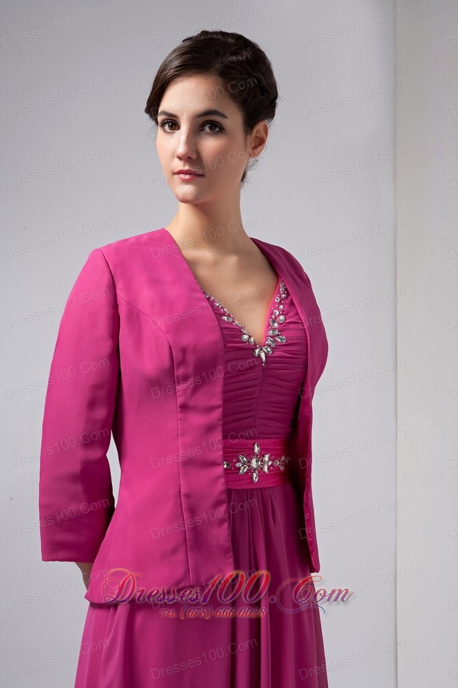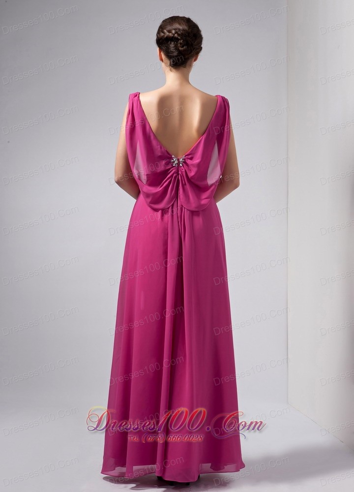 Hot Pink Column Mothers Dresses V-neck Floor-length