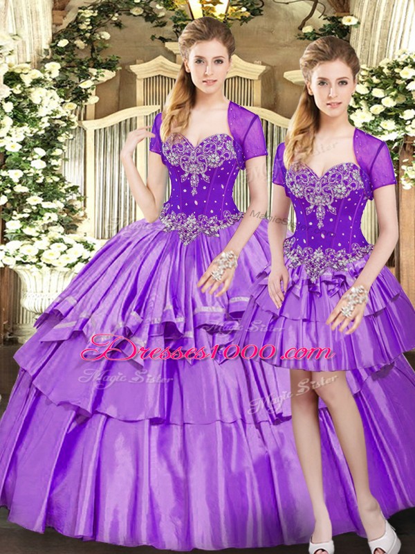 Simple Sweetheart Sleeveless Organza and Taffeta Quinceanera Gown Beading and Ruffled Layers Lace Up