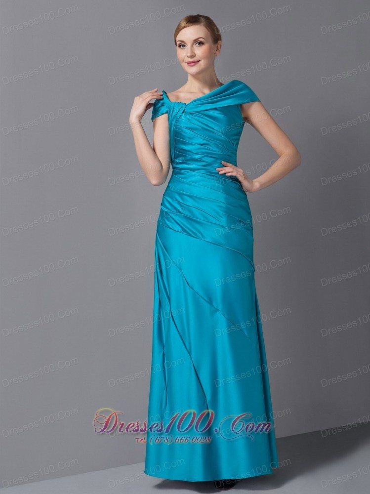 Teal Mothers Dresses Asymmetrical Ruch Ankle-length
