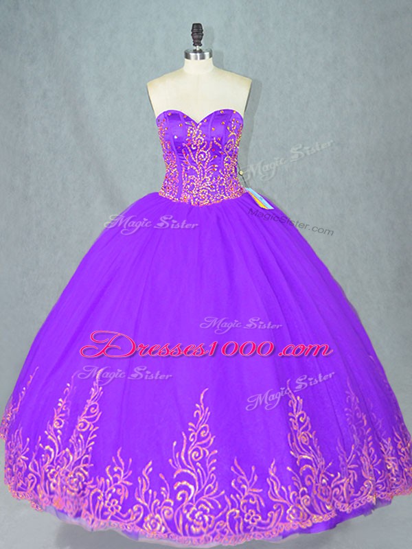 Floor Length Ball Gowns Sleeveless Purple Sweet 16 Dresses Lace Up