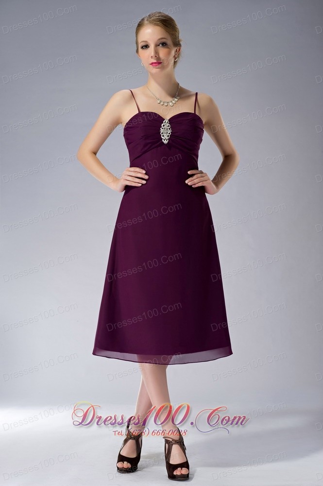 Burgundy Straps Knee-length Chiffon Mothers Dresses