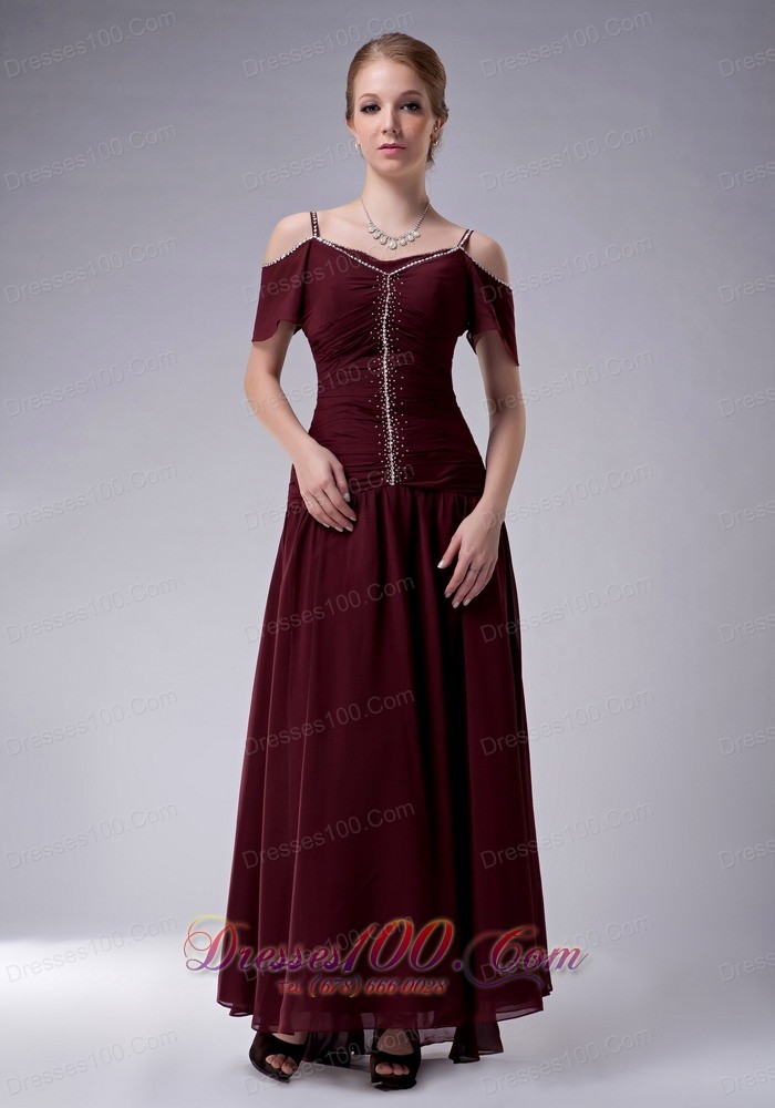 Burgundy Empire Straps Dress For Mothers Ankle-length