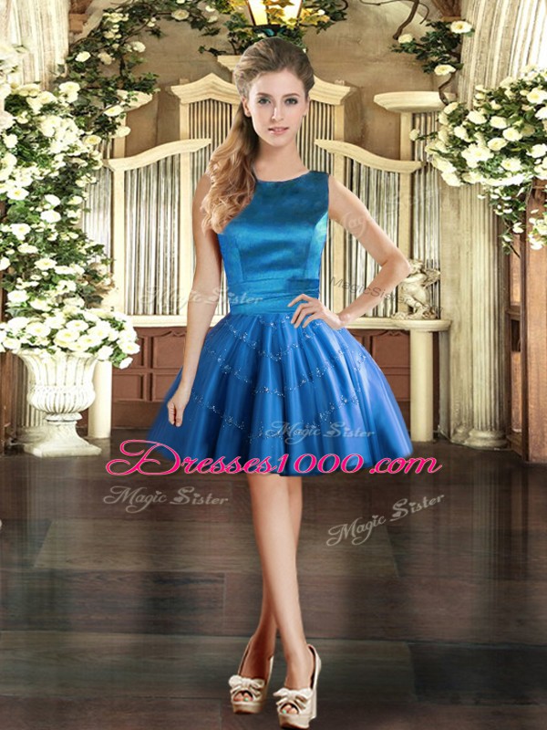 Tulle Scoop Sleeveless Lace Up Appliques Evening Dress in Blue