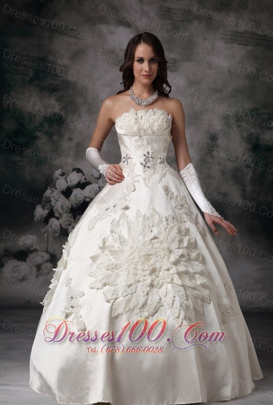 Strapless Satin Ball Gown Bridal Dress Appliques Custom Made
