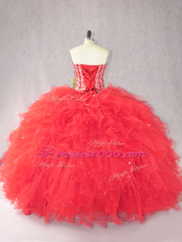 Red Sleeveless Tulle Lace Up 15th Birthday Dress for Sweet 16 and Quinceanera