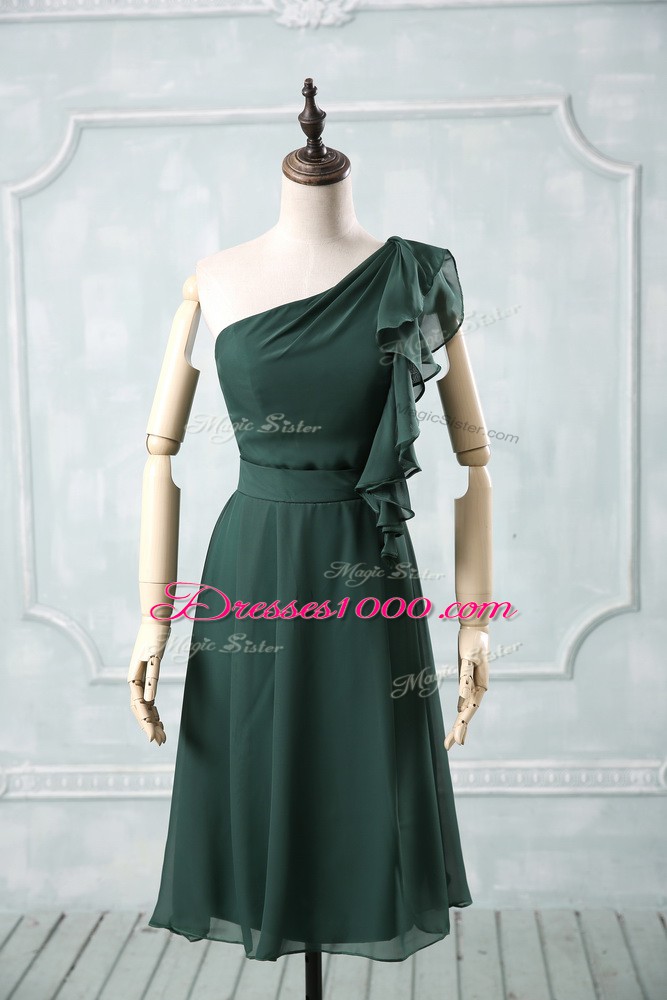 Shining One Shoulder Sleeveless Chiffon Homecoming Party Dress Ruching Zipper