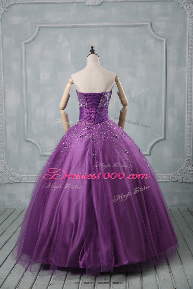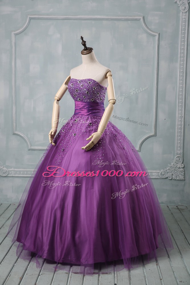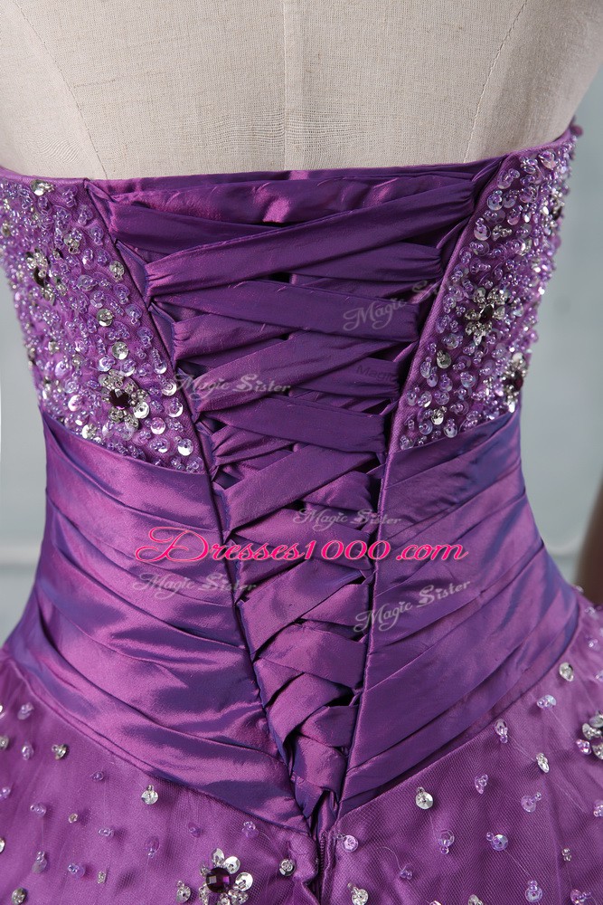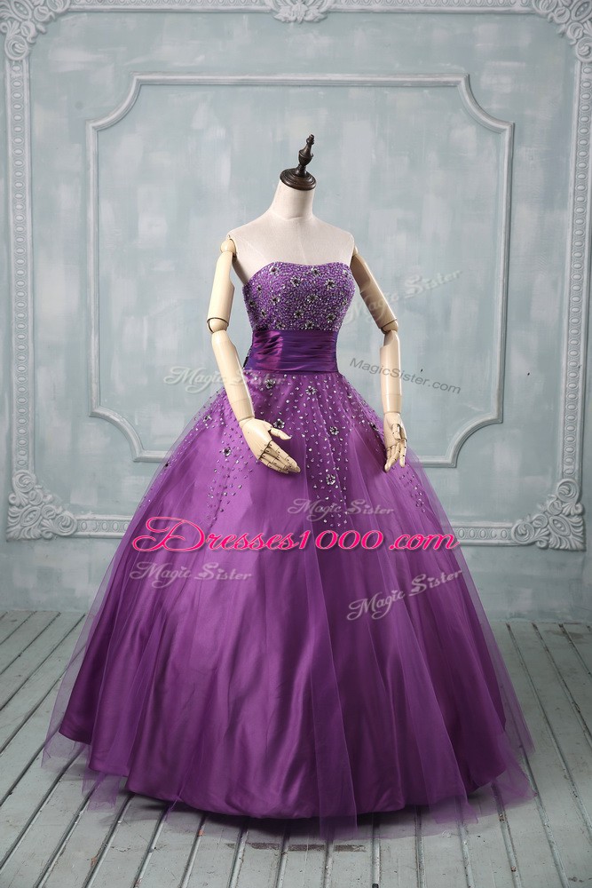 Strapless Sleeveless Lace Up Quinceanera Dress Eggplant Purple and Purple Tulle