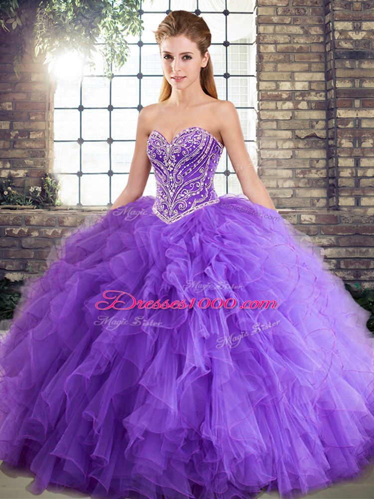 High End Lavender Sweetheart Neckline Beading and Ruffles Quinceanera Dresses Sleeveless Lace Up