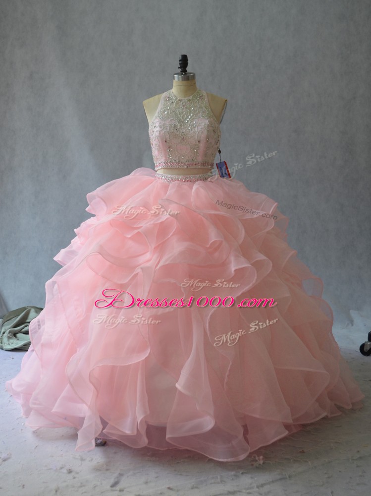 Designer Organza Sleeveless Sweet 16 Quinceanera Dress and Beading and Ruffles