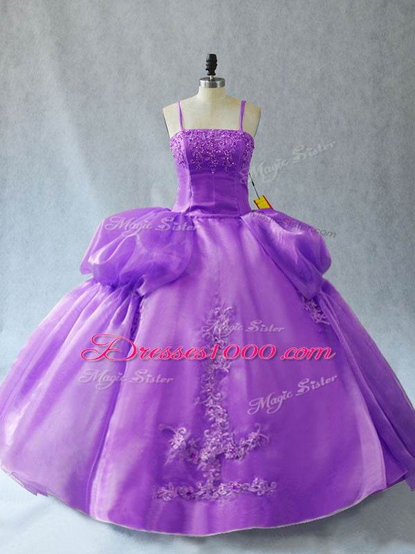 Ball Gowns Quince Ball Gowns Lavender Spaghetti Straps Organza Sleeveless Floor Length Lace Up