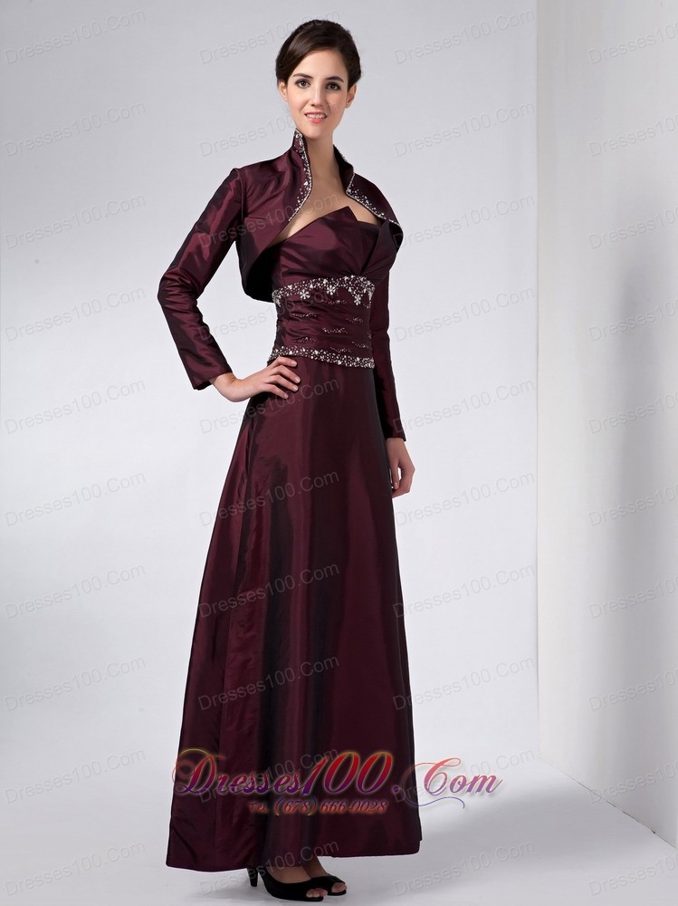 This gorgeous corset dress is sure to work wonders for any figure! Its tuck-sculpted design is nicely enhanced by the lustrous quality of its chic material. Dramatic pleats radiate across the sweetheart neckline bodice. The ankle-length skirt creats a dramatic effect . The broad floral beaded waistband with pleating highlights the mid-section and everything`s topped off by a matching, long-sleeved bolero.