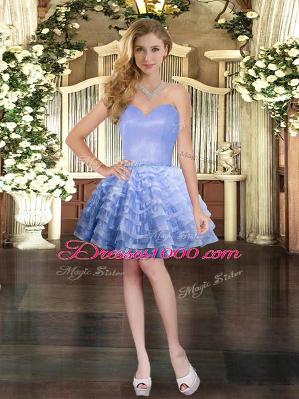 Lavender Ball Gowns Organza Sweetheart Sleeveless Ruffled Layers Mini Length Lace Up Homecoming Dress Online