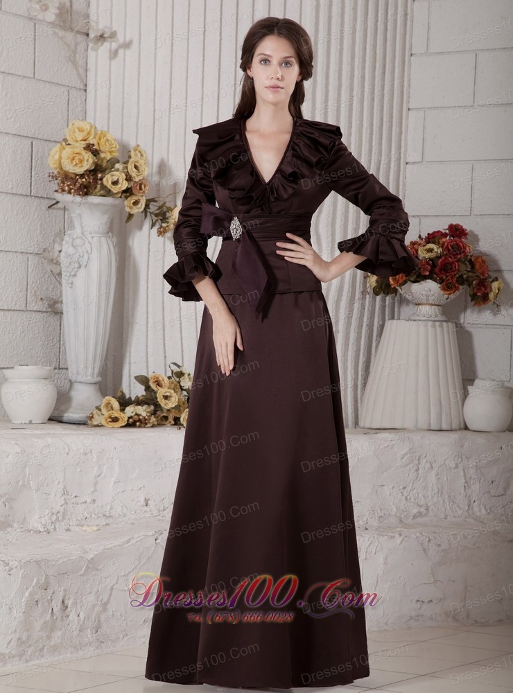 Ruffes Mother Of Bride Dress Long Sleeves Dark Brown