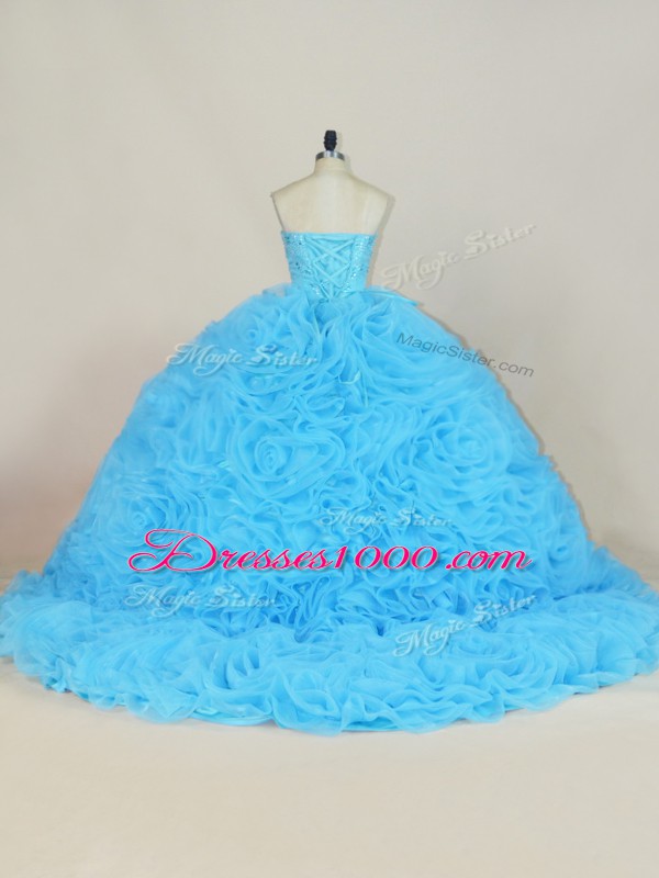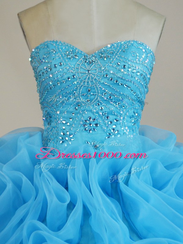 Baby Blue Lace Up Sweetheart Beading and Ruffles Quinceanera Gowns Organza Sleeveless Court Train