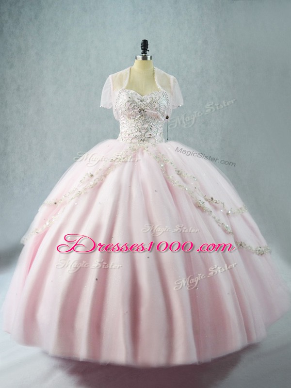 Pink Lace Up Sweetheart Beading Quinceanera Dresses Tulle Sleeveless