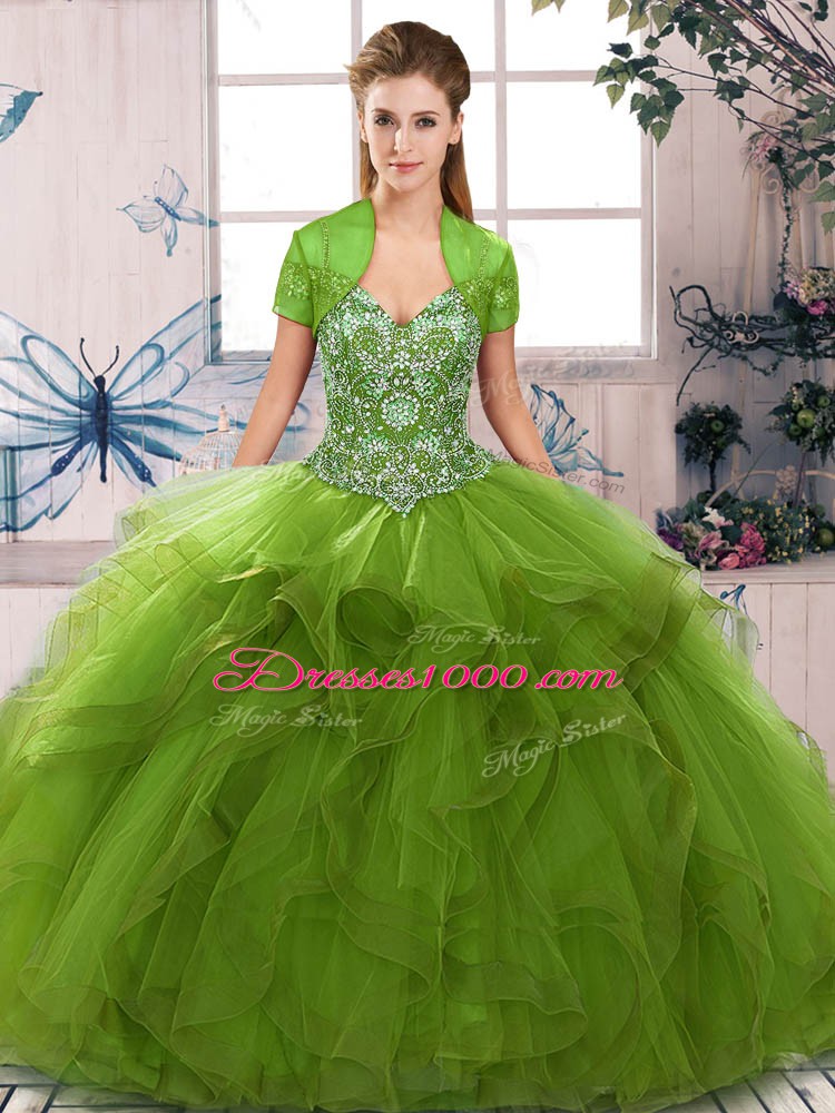 Custom Fit Olive Green Off The Shoulder Neckline Beading and Ruffles Sweet 16 Quinceanera Dress Sleeveless Lace Up