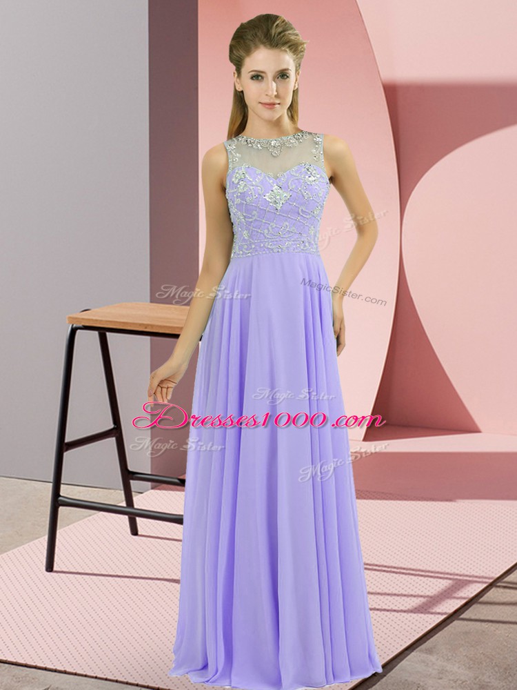 Lavender Chiffon Zipper Prom Evening Gown Sleeveless Floor Length Beading